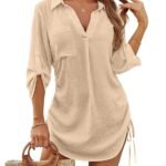 - Women’s swimwear cover ups: Shirt collar, half sleeve with button cuffs, easily dress down and up. Interesting side drawstring design, can be adjusted at will, perfect to show your sexy curves