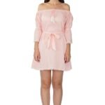 Boho Girl Women’s Rose Off-The-Shoulder Neck Casual Mini Dress | Midi Western Dress for Women | Off Neck Shoulder Fit and Flare Mini Length Dress