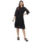 DEEBACO Women’s Fit & Flare Midi Dress|Western Dress for Women|Bishop Sleeves Dress|Girl’s Dress|One Piece Dress|Summer Dresses for Women Dress|Dobby Georgette Dress (Black)