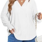 • Design:Women’s plus size tops features split v neck,puff long sleeves,solid color,eyelet fabric specially designed, not only following the trend, but also keeping breathable.