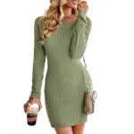 JUMZ Bodycon Dress, Skin Friendly Casual Round Neck Pleated Open Back Knitted Dress to Party Meeting L Green