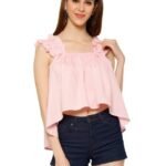 KASSUALLY Dresses for Women Pink Frilly Shoulder high Low Top