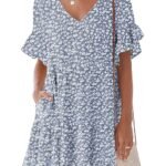 • 【Unique Design】: Short sleeve dress with side pockets for women, ruffle cap sleeves, v-neck, bohemian style, fit & flowy. Perfect for home, travel, beach, friends gathering, a stylish casual dress that is indispensable to your wardrobe