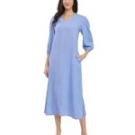 Pink Fort Rayon Solid Buttoned Maxi Dress – Blue