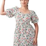 Selvia Western Dress for Women| Floral Printed Short Sleeve Crepe Western Dress for Women | Sweetheart Neck A-Line Dress for Women | One Piece Dress for Women