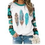 - Occasion-Women’s western aztec print long-sleeved round neck lightweight pullover. It is very suitable for daily wear and matching with upcoming festivals, dating, running, shopping, work, office, school, party, club, holiday or street, street clothing, performance, party and daily life, etc.