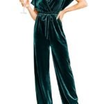 - Features: bateing half sleeve,long pant, jumpsuit, wide leg ,side pockets, high waist, elastic waist, waist tie, short sleeves, deep V-neck, solid color fabric, the surface of the fabric has a layer of shiny fluff, making the whole dress more elegant ,noble.